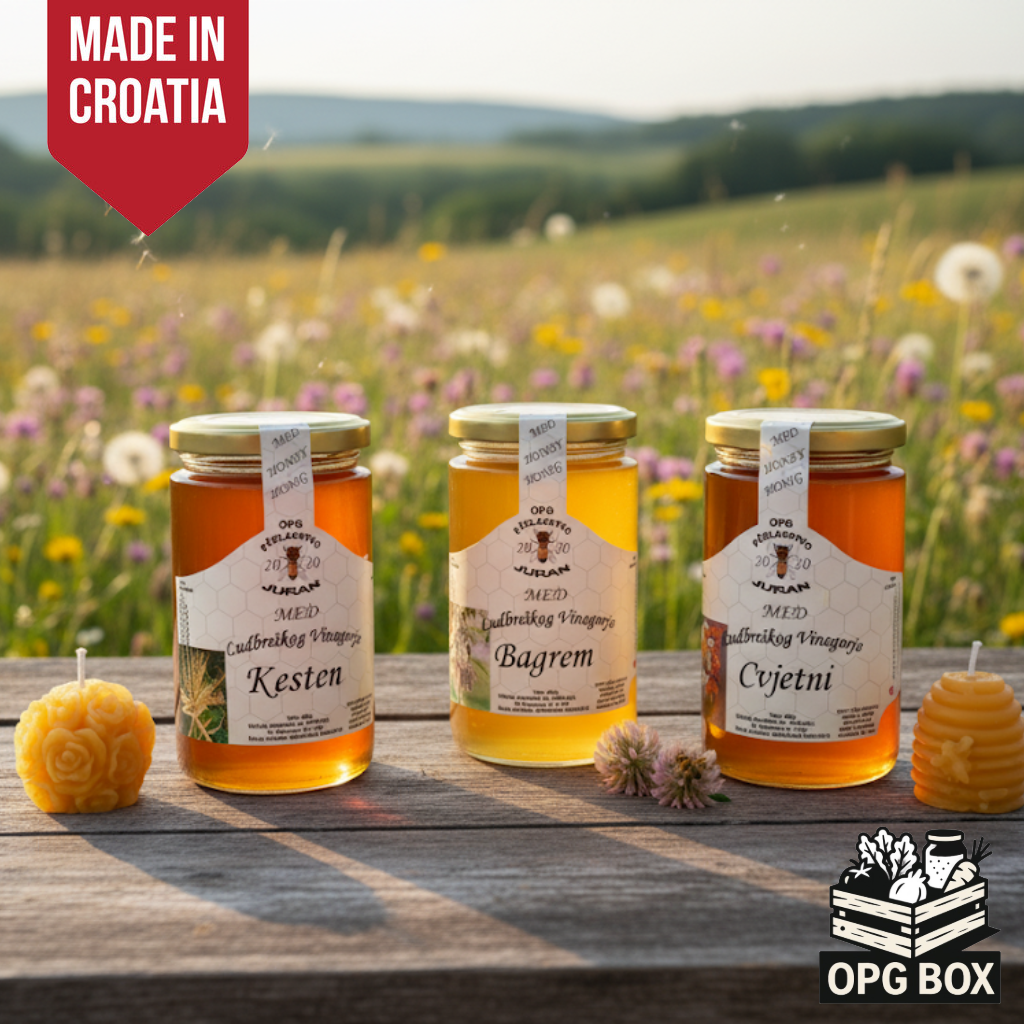 We'd like to introduce you to a delicious domestic experience: the high-quality, authentic products of small Croatian family farms (OPGs).We believe in supporting local producers who pour their hearts into traditional farming. Support Local, Taste Authentic. Ready to explore? Visit our sister shop with domestic Croatian products. 💛