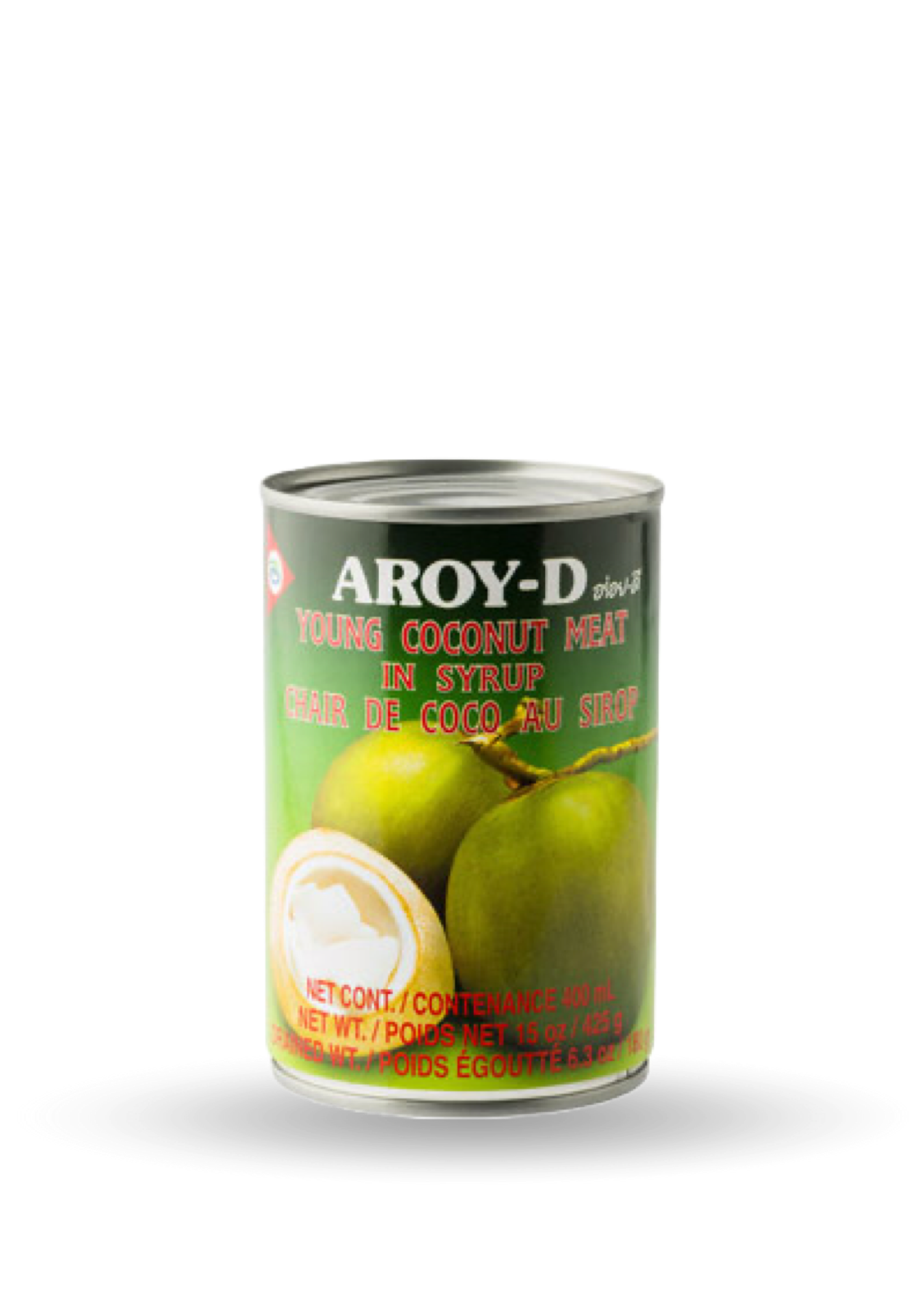 Aroy-D Mlado kokosovo meso v sirupu je sladka in osvežilna konzerva, narejena iz nežnega mesa mladih kokosovih orehov, konzerviranih v sladkem sirupu. Ta izdelek uživamo kot sladico ali prigrizek in je znan po naravnem okusu kokosa in zadovoljivi sladkosti.